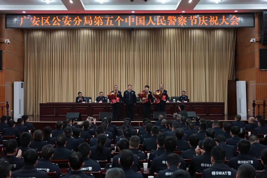 1月10日下午,广安区公安分局第五个中国人民警察节庆祝大会隆重举行。副区长、分局党委书记、局长罗诚出席会议并讲话。大会上,为获奖的集体和个人举行了授奖仪式,对退休民警吴春满、毛国君、周建国举行了荣誉退休仪式。