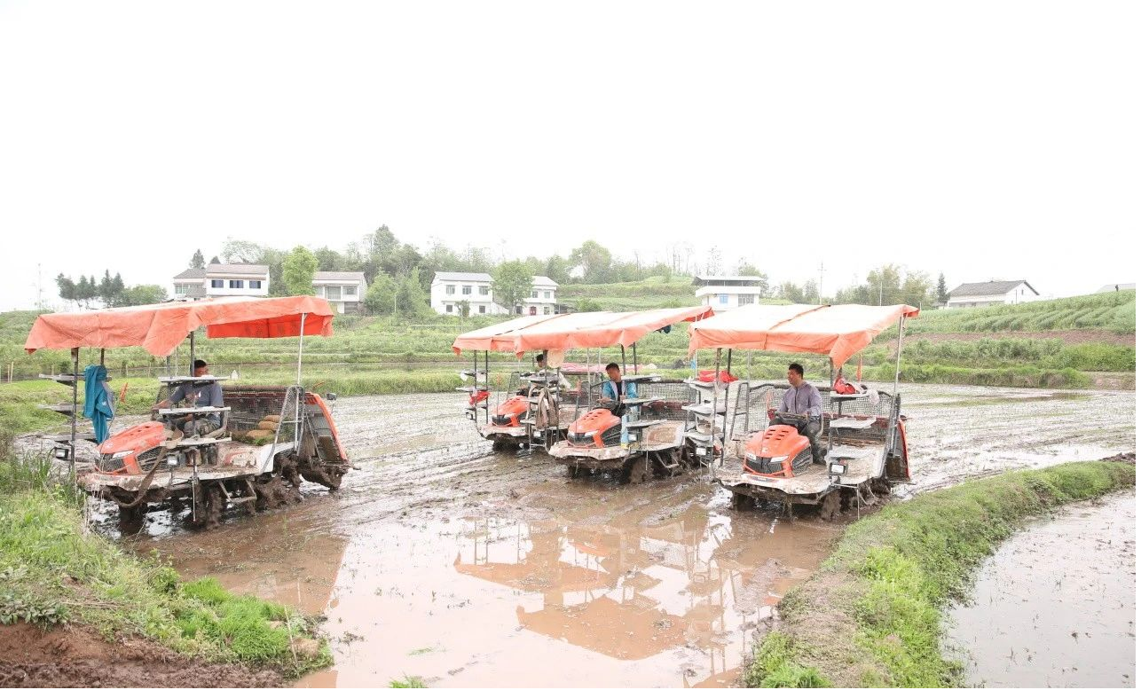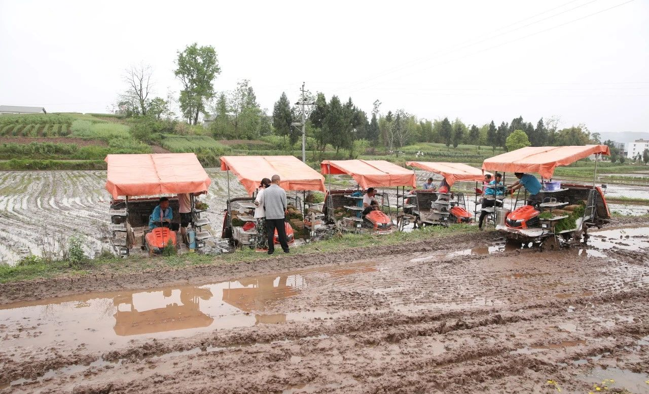 近日,位于花桥镇环城村的广安市广安区双伟家庭农场里,一片繁忙景象映入眼帘。工人们默契协作,将秧盘稳稳当当地装在插秧机上。随着机器发出阵阵轰鸣,插秧机在机手的操控下,来回穿梭于田间地头。一株株嫩绿的秧苗从秧盘上有序滑落,整齐地插入稻田之中。放眼望去,一幅充满生机活力的农耕画卷正缓缓铺陈开来。