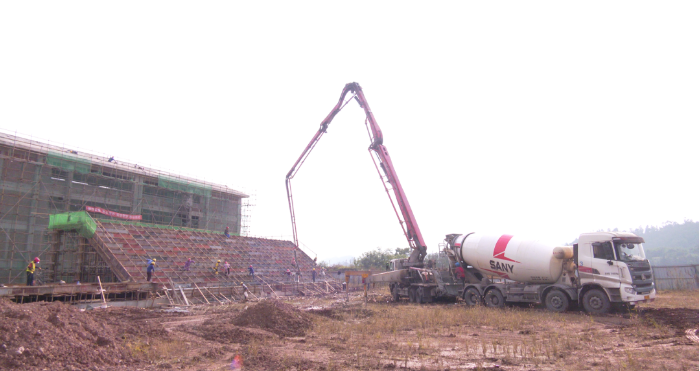 项目现场管理人员陈桥介绍,项目主体施工已基本完成,现进行看台二层结构板面的浇筑施工,预计明年3月基本完工。