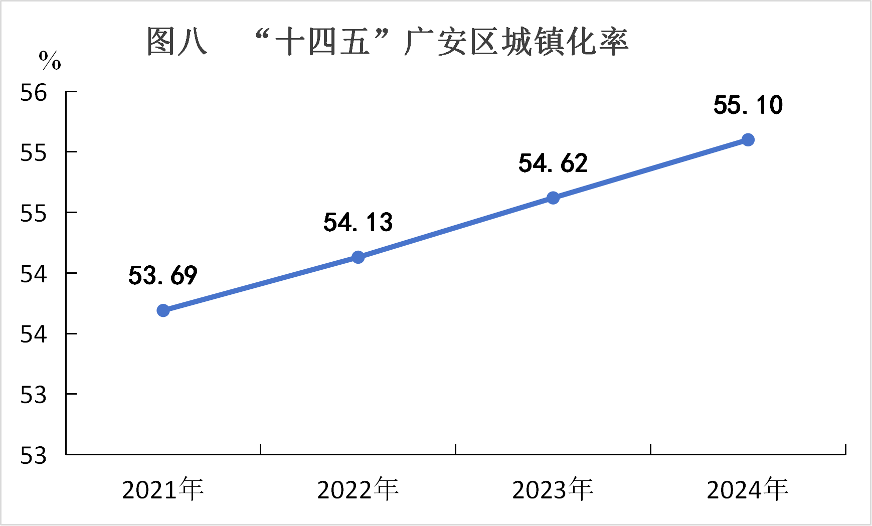 (二)城乡发展统筹推进。常住人口城镇化率稳步提高,由2020年的52.96%提升至2024年的55.1%,年均提高0.54个百分点。城市建成区拓展至30.96平方公里,成功入选“十四五”全国第二批系统化全域推进海绵城市建设示范城市,累计实施老旧小区改造300余个、老旧街区提升3个,白塔公园、五一公园、北辰湖公园等多个公园有序开放,人均公园绿地面积达24平方米。农村人居环境显著提升,建成宜居宜业和美乡村86个,农村卫生厕所普及率达93.25%,创成全省乡村振兴先进县。
