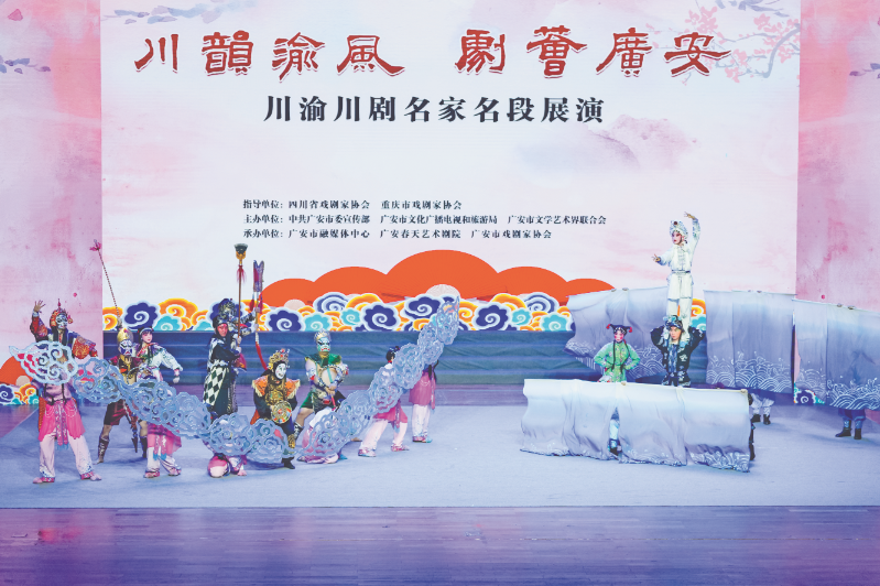 4月28日19时30分,暮色悄然降临,市民广场会议中心(广安大剧院)内早已坐满观众。在600余名观众翘首企盼中,“川韵渝风·剧荟广安”川渝川剧名家名段展演精彩开幕,传统艺术的魅力在光影流转间次第绽放。