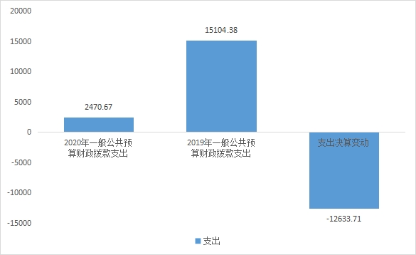 2020年一般公共预算财政拨款支出2470.67万元,占本年支出合计的6.39%。与2019年相比,一般公共预算财政拨款15104.38万元减少12633.71万元,减少83.64%。主要变动原因是中央预算内政策资金的减少。
