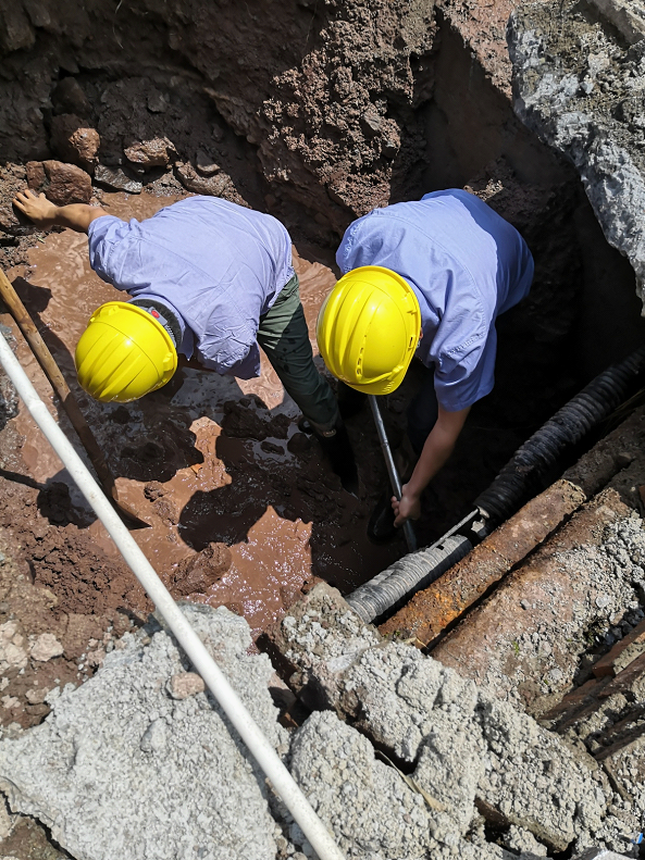 这几天,广安爱众水务事业部安装、抢修人员可谓是忙过不停。5月16日上午,广安爱众水务事业部接到群众反映,广安城南梧桐郡小区大门口不远处有城市自来水供水爆管发生。广安爱众水务事业部第一时间组织抢险队员奔赴现场开展抢维修作业,全力保障辖区供水安全。“爆管过后,我们关闭了上面的主线,这边的居民暂时用另一个环网的供水,大概3个小时以后,就能恢复主管道正常供水。”广安爱众水务事业部工作人员罗刚说道。