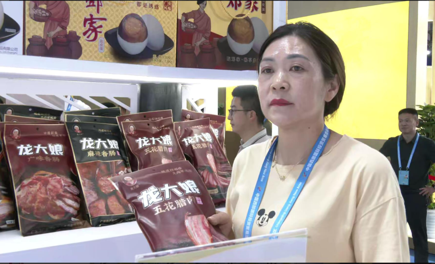 邓家盐皮蛋销售部滕春琼向记者介绍:“这是我们去年出的一款新产品,龙大娘腊肉,这个腊肉是采用当地的土猪腊肉、传统的工艺腌制而成。”