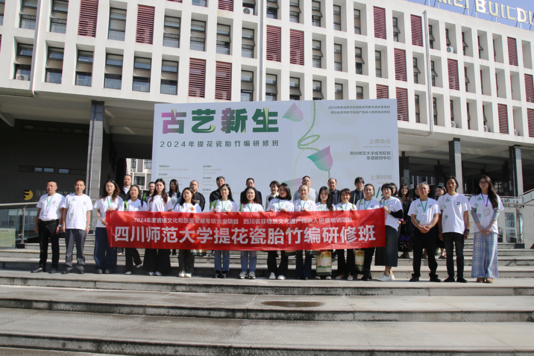 10月22日,提花瓷胎竹编研修班开班仪式在四川师范大学尚美楼学术报告厅顺利举行。作为四川省文化和旅游专项资金项目,本次研修班由四川师范大学、四川省文化和旅游厅共同主办,四川师范大学美术学院·书法学院与艺术研究院共同承办,联合国家级非遗传承人刘嘉峰竹编技能大师工作室实施执行。四川省文化和旅游厅一级调研员杨必树,四川省民间文艺家协会秘书长高敏,国家级非遗传承人、中国工艺美术大师刘嘉峰,四川师范大学影视与传媒学院院长、艺术研究院院长陈佑松,美术学院·书法学院院长刘传军教授,国家级非遗传承人、四川省工艺美术大师刘江,国家级非遗传承人,美院非遗与文创教研室郑姣教授,王墨兰副教授,吴朋波主任等学员、师生参加开班仪式,开班仪式由四川师范大学艺术研究院副院长伍妍教授主持。